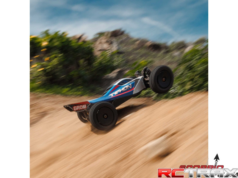 ARRMA TYPHON GROM 4X4 Buggy 1:18 RTR został zaprojektowany i zbudowany zgodnie z tymi samymi wysokimi standardami, trwałością i osiągami, których można oczekiwać od samochodów ARRMA RC. Jest tylko trochę mniejszy!