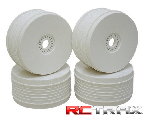 Cztery białe felgi 1:8 produkcji firmy ProCircuit, przeznaczone do modeli Buggy.