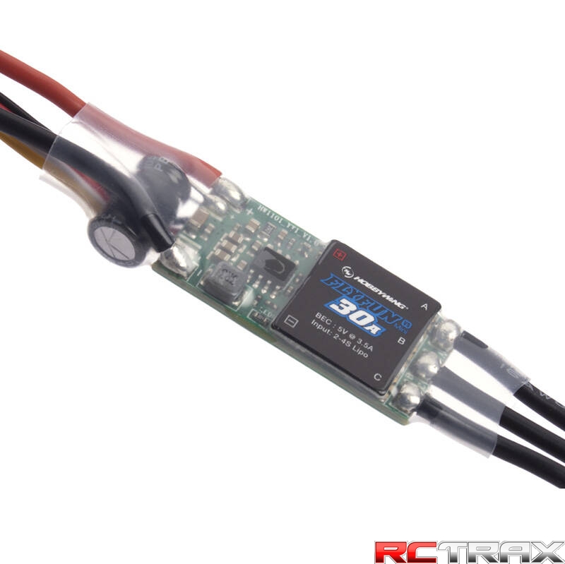 Regulator obrotów FLYFUN - 30A mini V5 od Hobbywing przeznaczony do modeli samolotów i helikopterów zasilanych prądem przemiennym (AC). Charakteryzuje się stałym prądem 30A i maksymalnym prądem szczytowym 45A, co gwarantuje stabilne i wydajne zasilanie nawet w wymagających warunkach. Regulator obsługuje akumulatory LiXX (2-4 ogniwa) i jest wyposażony w układ BEC o napięciu 5.2V i prądzie 3.5A, co pozwala na efektywne zasilanie elektroniki pokładowej. Kompaktowe wymiary (37 mm długości, 17 mm szerokości, 5 mm wysokości) oraz niska waga (23 g) umożliwiają łatwy montaż w modelach o ograniczonej przestrzeni. FLYFUN - 30A mini V5 oferuje jednokierunkowe sterowanie, posiada funkcję hamulca oraz możliwość programowania, co pozwala na dostosowanie parametrów pracy do specyficznych potrzeb użytkownika. Brak wejść na czujniki dodatkowo upraszcza konstrukcję i obsługę.