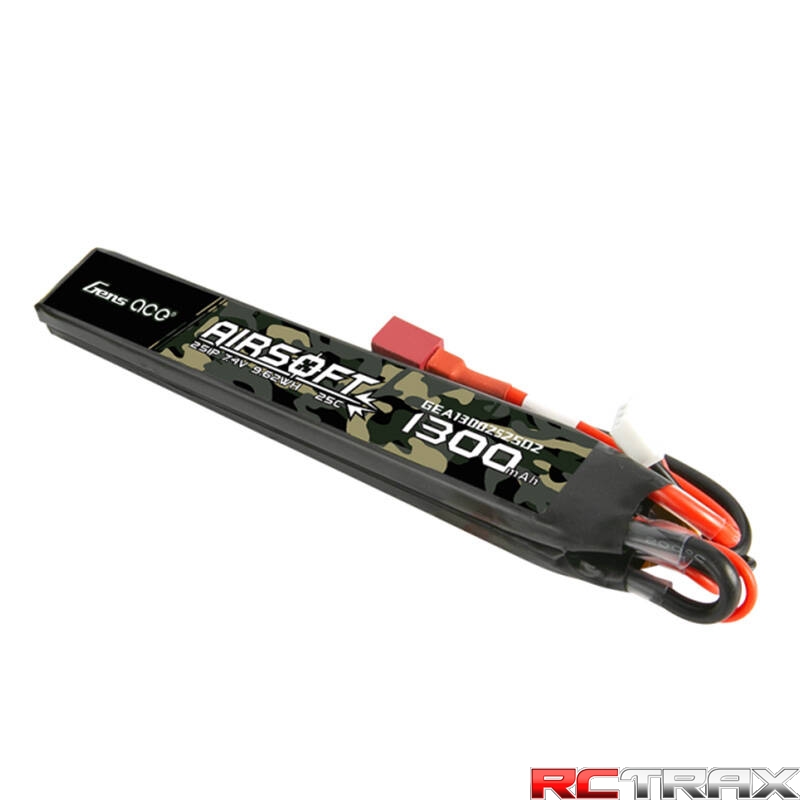 Akumulator Gens Ace 25C 1300mAh 2S1P 7.4V Saddle Airsoft Gun Lipo z wtyczką T została zaprojektowana specjalnie do zasilania broni Airsoft. Nadaje się do rur buforowych i AEG, w których przestrzeń baterii jest ograniczona bez poświęcania mocy. Pasuje do CRANE STOCK, AEG, M4 / M16 / HK416 itp.