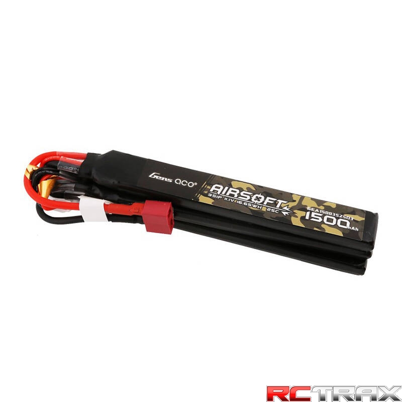 Akumulator Gens ace 25C 1500mAh 3S1P 11.1V Nunchuck 3X Airsoft Gun Lipo z konektorem T Plug stworzono z myślą o zasilaniu broni airsoftowej. Jest kompatybilny z szerokim spektrum replik AEG, w tym z popularnymi modelami takimi jak M4, CM16, SCAR, AR15, LE STOCK, co sprawia, że jest idealnym wyborem dla wszystkich entuzjastów broni Airsoftowej. Dzięki pojemności 1500mAh i napięciu 11.1V, zapewnia długotrwałą moc, umożliwiając długie rozgrywki.