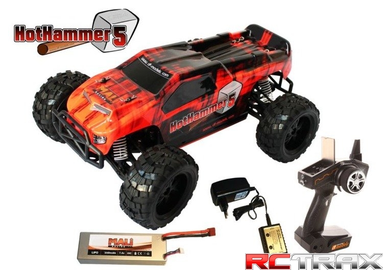 Model Hot Hammer 5 Nadajnik 2,4 GHz Akumulator LiPo 2S 7,4 V Silnik elektryczny Bezszczotkowy ESC 45 A Metalowe serwo 9 kg Ładowarka z balanserem |