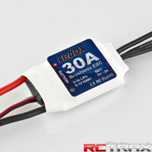 Regulator 30A do lotniczych silników bezszczotkowych wyprodukowany przez firmę Redox . Nowa wersja oprogramowania v2 .