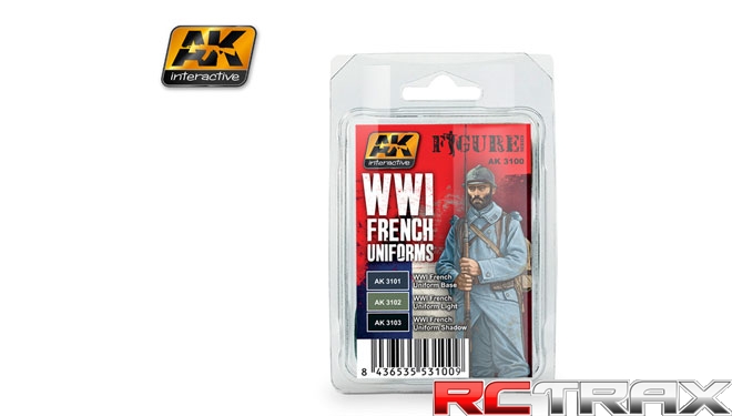 AK-Interactive AK-3100 WWI French Uniforms AK 3100 - zestaw farb akrylowych do malowania francuskich mundurów z okresu I Wojny Światowej.