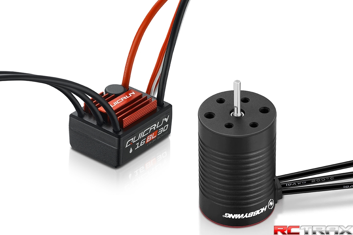 Regulator QuicRun16BL30 s oraz silnik bezszczotkowy 2435SL 6500Kv. Combo nadaje się dla samochodów szosowych i terenowych RC w skali 1:16 oraz 1/18 napędzanych 2-3S LiPo.