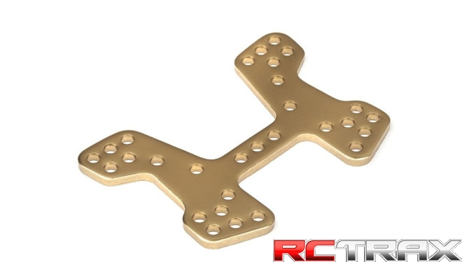 Replacement Front Shock Tower for the Maverick Strada off-road cars, excluding MT. Finished in a cool gold color anodizing.