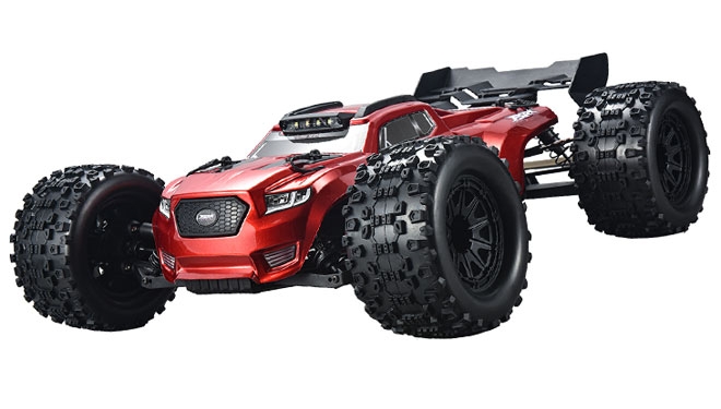 Wzmocnione nylonowe podwozie z aluminiowymi osłonami ślizgowymi 6061-T6 z przodu i z tyłu z łatwością amortyzuje twarde lądowania. Fabrycznie zamontowane aluminiowe amortyzatory olejowe, wzmocnione ramiona zawieszenia i przyczepne opony terenowe zapewniają kontrolę i przyczepność. Wały napędowe CVD, wodoodporne serwo układu kierowniczego o wadze 6 kg i ultrajasny pasek świetlny LED dopełniają całości, umożliwiając prawdziwe przygody nawet w mokrych warunkach i o zmierzchu.