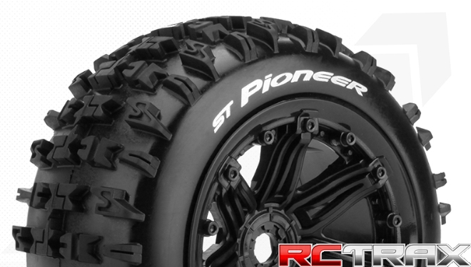 Fits The stadium truck tires are about 20mm more narrow than the Monster truck tires. The outer diameter is similar. The stadium truck tires have the advantage to be lighter and to reduce the load on the transmission as well as on the suspension.
