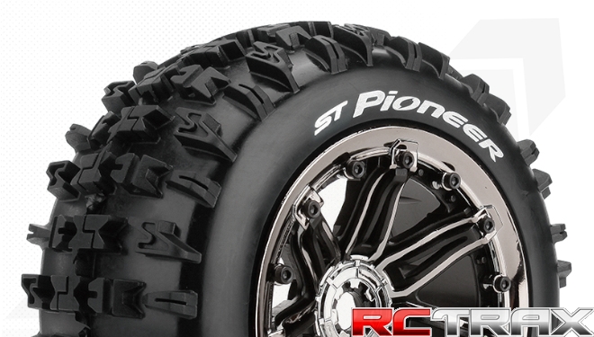 Fits The stadium truck tires are about 20mm more narrow than the Monster truck tires. The outer diameter is similar. The stadium truck tires have the advantage to be lighter and to reduce the load on the transmission as well as on the suspension.
