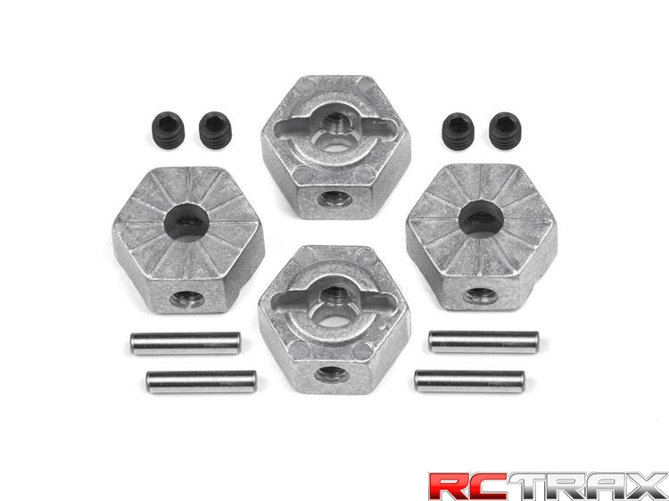 These 12mm Hex Hubs are made from aluminum and feature a grub screw that locks the hub onto the axle, so that they stay in place when you remove the wheels.