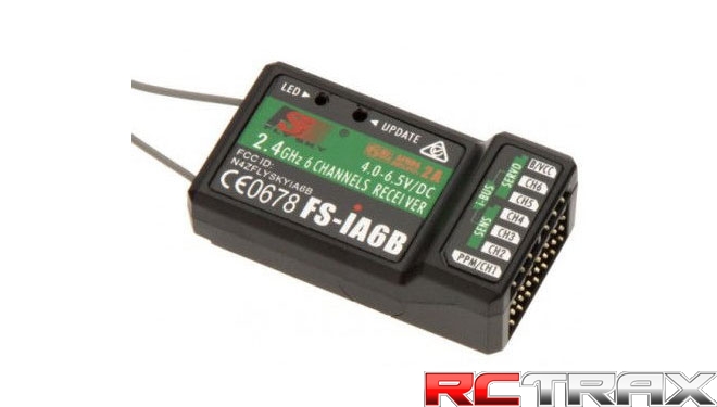 6-kanałowy odbiornik FlySky FS-IA6B, większy od poprzednika (FS-IA6), dedykowany do nadajników FlySky FS-i6, i10 oraz Turnigy TGY-i6 i i10. Odbiornik wspiera również modulację PPM a także pozwala na podłączenie dodatkowych czujników.