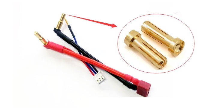 Od strony baterii kabel posiada banany grubości 5mm. Dzięki temu rozwiązaniu kabel pasuje do obu rodzai pakietów.