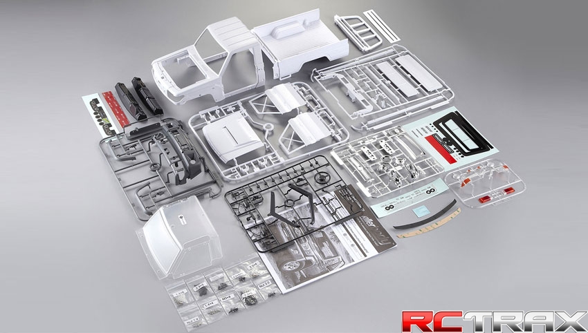 KB48601 1/10 Toyota Land Cruiser 70 ABS Kit unpainted Set includes: - KB48602 Truck Cab - KB48603 Truck Bed w. Bed Sides - KB48604 Chromed parts - KB48605 Painted Light Lenses (Lexan) - KB48606 Front Bumper - KB48607 Air Intake - KB48608 Wing & Interior mirror - KB48609 Transparent Window Windshield (Lexan) - Steering Wheel - Wiper & Door grill (Right & Left) - Front Wheel arches (Right & Left) - Dashboard & Decal Sheet - Body Decal Sheet - Parts Bag - Instruction Sheet