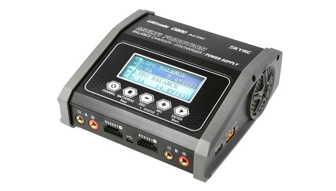 SkyRC D250 to dwukanałowa ładowarka z dwoma niezależnymi obwodami, dzięki którym można ładować dwa rodzaje akumulatorów jednocześnie. Ładowarka posiada tryb synchronizacji, w którym użytkownik może zastosować te same ustawienia dla obu obwodów, co pozwala oszczędzić czas na niepotrzebnej konfiguracji. Całkowitą nowością zastosowaną w ładowarce D250 są komunikaty głosowe. Komunikaty informują o obecnym trybie pracy, o aktywacji zabezpieczeń ładowarki i o następnych krokach podczas konfiguracji. Komunikaty są dostępne w języku angielskim. Ładowarki można używać jako miernika baterii litowej i miernika rezystancji. Istnieje także automatyczne ograniczenie prądowe, temperatury i limit czasu przetwarzania, co sprawia, że ładowarka jest niezwykle bezpieczna.