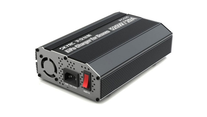 SkyRC PC520 to ładowarka zaprojektowana specjalnie do ładowania dronów z wbudowanym zasilaczem. Urządzenie jest w stanie ładować akumulatory LiPo 6S z wbudowanym balanserem i stosować tryb przechowywania akumulatora (storage). Podczas pracy dane ładowania/rozładoawnia w czasie rzeczywistym są wyświetlone na wyświetlaczu LED, który informuje również o błędach ładowania. Maksymalne bezpieczeństwo ładowania zapewniają zabezpieczenia, w tym ochrona przed spięciem obwodu i nieprawidłową biegunowością. Maksymalna moc łądowania PC520 wynosi 520 W, a maksymalny prąd łądowania to aż 20 A.