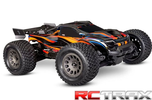 Model RC TRAXXAS Mini XRT VXL 4WD 3S 1/12 Truggy RTR w wersji kolorystycznej pomarańczowej.