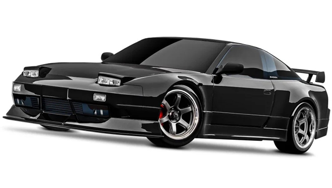 Nadwozie Nissana 240 SX jest niezwykle szczegółowe, z formowanymi wtryskowo lusterkami bocznymi, dolną kratką i splitterem. Formowane tylne skrzydło i kratka nie tylko świetnie wyglądają, ale także pełnią funkcję wzmocnień nadwozia dla systemu mocowania bez zacisków, tworząc spójny wygląd.