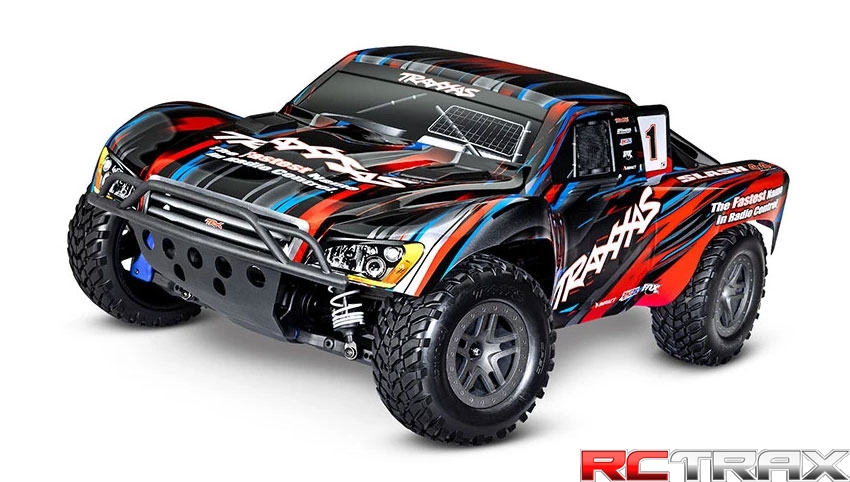 Slash ma teraz poliwęglanową - zatrzaskową karoserię, która wygląda jak pełnowymiarowe ciężarówki wyścigowe. Cztery wytrzymałe zatrzaski mocno trzymają korpus podczas intensywnej akcji, ale zwalniają się w ciągu kilku sekund, umożliwiając szybką wymianę baterii. Karoserie Slash są wstępnie pomalowane z nałożonymi naklejkami, dzięki czemu Slash jest gotowy do wyścigu.
