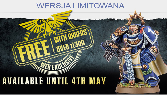 Właśnie w dniu dzisiejszym ruszyła nowa strona z modelami bitewnymi Warhammer. Wraz z otwarciem nowej strony firma Games Workshop wydała limitowaną figurkę kapitana armii Space Marines, wydany specjalnie na tą okoliczność. Figurka możliwa jest do otrzymania tylko po złożeniu zamówienia powyżej 300pln. Do każdego zamówienia dołączony zostać może tylko jeden model. Zamówienie tej pozycji w ramach standardowych zamówień nie będzie możliwe.