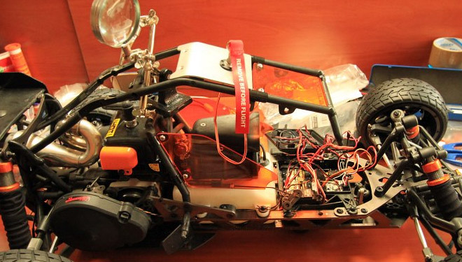 naszej firmowej HPI BAJA. Celem modyfikacji było ominięcie oryginalnego włącznika, który został przykryty zamontowaną wcześniej obudową podwozia z lexanu firmy PROLINE.