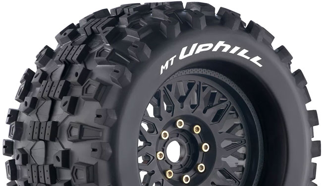 Louise RC - MT-UPHILL - 1-8 Monster Truck Tire Set - Mounted - Sport - Black Wheels - Removable 0" & 1/2" OFFSET HEX 17mm - L-T3219X