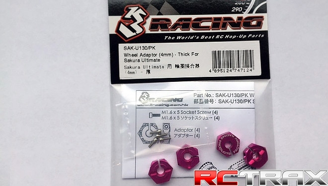 Aluminium Wheel Adaptor 4mm Thick 4 pcs Pink For Sakura Ultimateod firmy 3Racing.