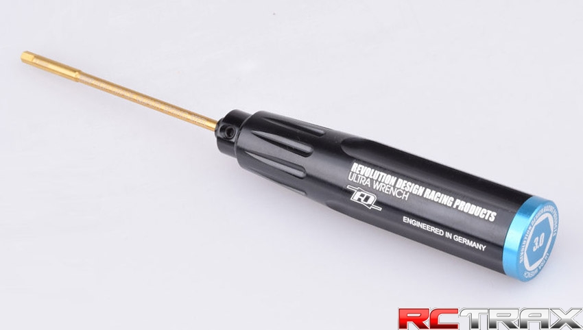 The Revolution Design Racing Products Ultra Wrench line of tools makes building, maintaining and tuning your car a breeze. The high quality 7075-T6 aluminium grip allows for effortless wrenching over a long time while the hardened steel tool tips perfectly match even with somewhat soft hardware, minimising the chance to strip soft or slightly oversized screw heads. Laser-etched markings on the tips and the grip's colour-coded cap help to locate the correct size even in crowded tool bags.