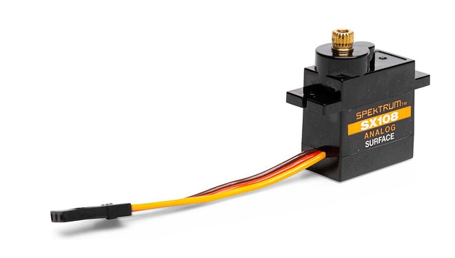 Model SX108 jest przeznaczony do sterowania modelami mikro i mini i jest doskonałym serwomechanizmem do funkcji użytkowych, takich jak 2-biegowa skrzynia biegów i Dig. Dzięki trwałej konstrukcji w połączeniu z podwójnym łożyskowaniem wyjściowym, wytrzymałością metalowej przekładni, płynną pracą silnika bezrdzeniowego, imponującym momentem obrotowym 41,8 uncji, SX108 jest idealnym, potężnym mikro serwomechanizmem dla małych pojazdów.