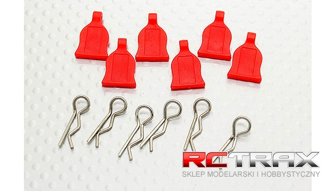 HK Spinki do karoserii sklala 1/10 RED 6 szt