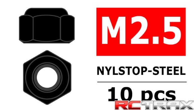 Team Corally C-3101-25-6 Steel Nylstop Nut M2.5 - Black Coated - 10 pcs