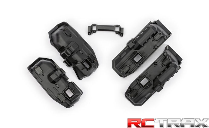TRAXXAS 8080R Błotniki wewnętrzne (wąskie), przednie i tylne, osłony świateł przeciwmgielnych, płyta akumulatora, mocowanie nadwozia, śruby z łbem płaskim 3x8, CS 2,5x6 (do montażu nadwozia bez użycia zatrzasków.