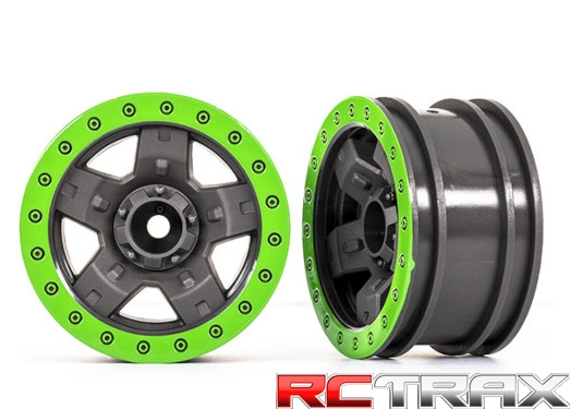 TRAXXAS 8180-GRN Wheels, TRX-4® Sport 2.2 (gray, green beadlock style) (2)