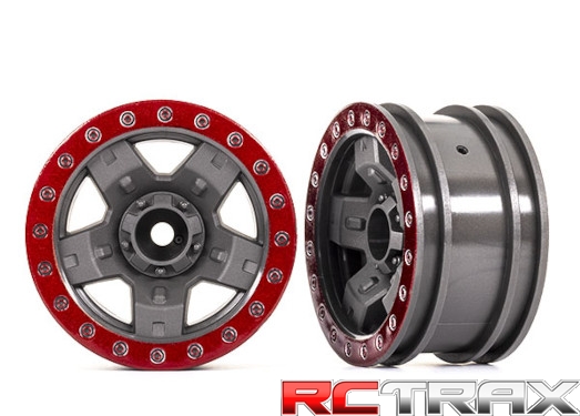 TRAXXAS 8180-RED Wheels, TRX-4® Sport 2.2 (gray, red beadlock style) (2)