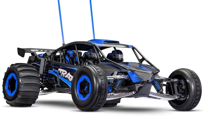 Traxxas dołożył wszelkich starań, aby dokładnie odwzorować pełnowymiarowy model Funco GTU Sand Car. Pro Scale Sand Car posiada pełne wnętrze z deską rozdzielczą i figurkami kierowców oraz replikami zdalnie sterowanych amortyzatorów 3,5″. Silnik to dzieło sztuki, składające się z 9 różnych części, w tym licencjonowanych filtrów powietrza R2C i doładowania Whipple.