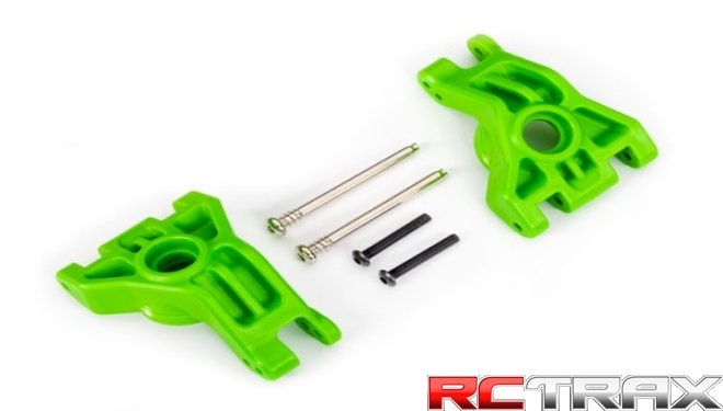 TRAXXAS 9050G Carriers, stub axle, rear, extreme heavy duty, green (left & right)/ 3x41mm hinge pins (2)/ 3x20mm BCS (2) (for use with #9080 upgrade kit)