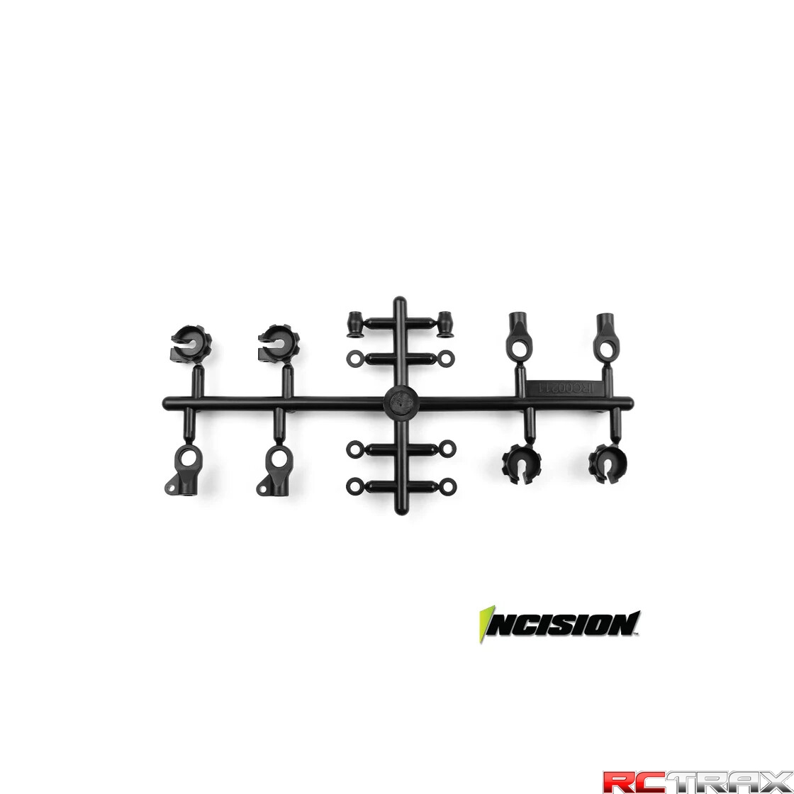 Replacement plastic rod ends with both keyed and non-keyed shock cups and shock mounting pivot balls
