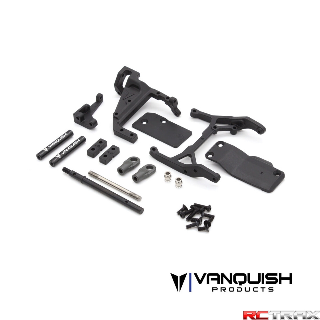 VFD Stubby conversion Kit for the VRD Chassis. Requires the use of a motor 35mm in length or less (typically outrunners). Shortens the length of the VFD transmission with a new topshaft and machined aluminum posts. Includes updated chassis bracing, behind the axle servo relocation mount and shortened VRD skid plate extension for the F10 axle. A lightweight outrunner motor and lowered servo position significantly lowers the center of gravity, increasing the performance of the VRD Carbon.