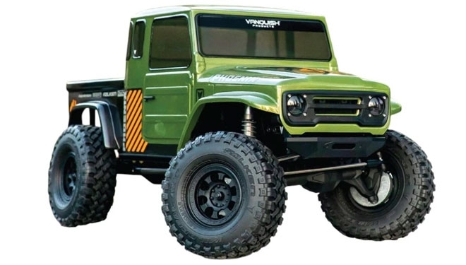 Podwozie Vanquish Products VS4-10 zostało stworzone, aby zapewnić równowagę między wyglądem w skali a nieograniczoną wydajnością. Stalowa konstrukcja kanału C zapewnia szczegóły skali, formowane przednie i tylne poprzeczki wypełniają szyny podwozia w miejscach największego naprężenia, zapewniając maksymalną wytrzymałość i zapewniając takie funkcje, jak podwójne mocowania serwomechanizmu, prowadzenie liny wyciągarki i ogniwo paliwowe. Formowane suwaki skalne są wyposażone w wymienną stożkową część zewnętrzną, która idealnie pasuje do nadwozia Phoenix. Podwozie VS4-10 zostało opracowane do współpracy z przekładnią VFD Twin, aby utrzymać nadbieg i serwo kopania nisko na platformie. Mocowanie Panharda na podwoziu jest wykonane z obrabianego maszynowo aluminium, aby wytrzymać uderzenia w trudnych warunkach na szlaku. Formowane wieże amortyzatorów obejmują górną część 80-milimetrowych amortyzatorów Incision S8E w podwójnym ścinaniu, zapewniając maksymalne wsparcie. Wąskie formowane zderzaki przednie i tylne maksymalizują prześwity, jednocześnie poprawiając kąty natarcia i zejścia.