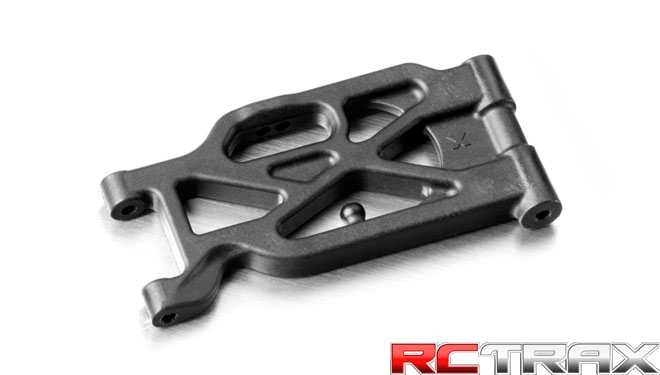 Front lower long suspension arm made from super-tough high-tech composite material suitable for most track conditions. Longer suspension arm have redesigned geometry for improved handling, increased traction and improved handling on bumpy tracks.