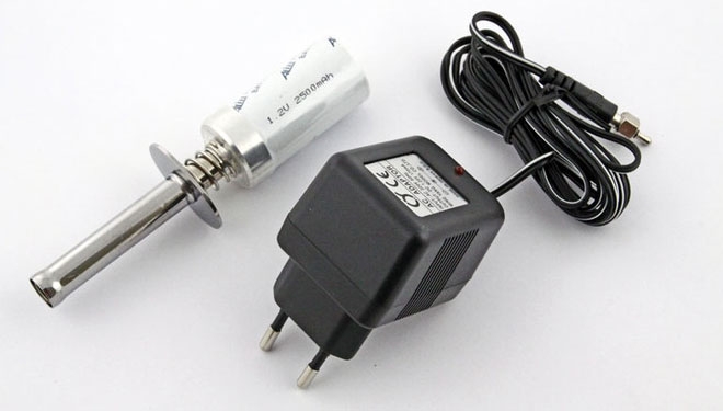 Grzałka do świec klips z akumulatorem (długi) z akumulatorem 2000 mAh 1,2V i ładowarką od firmy Q-Model.